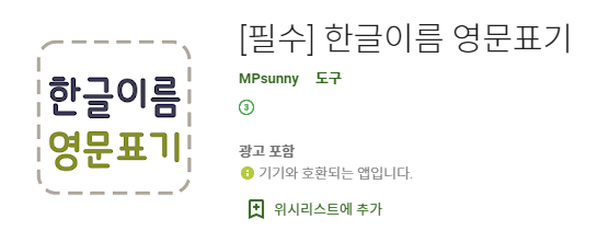 앱도 있습니다.해당 앱은 네이버랩의 언어변환기와 마찬가지로 로마자 표기법에 의해 한글 이름을